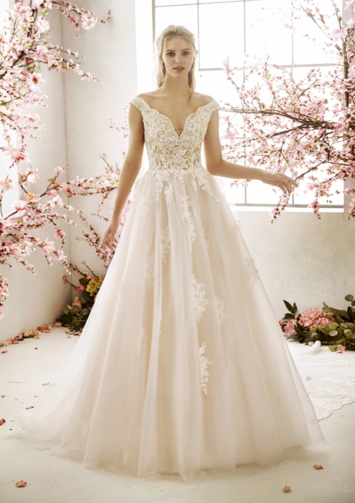 Važno je napomenuti da je prijelaz između gornjeg i donjeg dijela vjenčanice prilično naglašen, stoga je za ovakvu vrstu vjenčanica moguće kombinirati najrazličitije materijale.